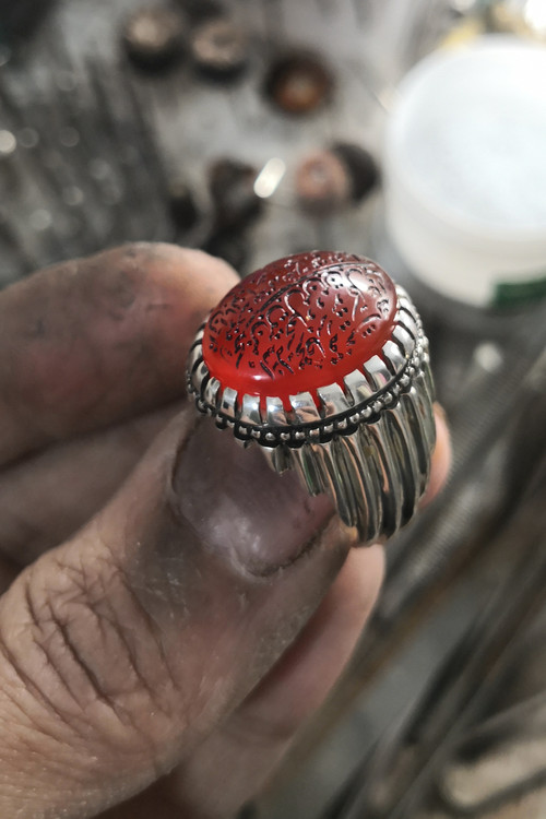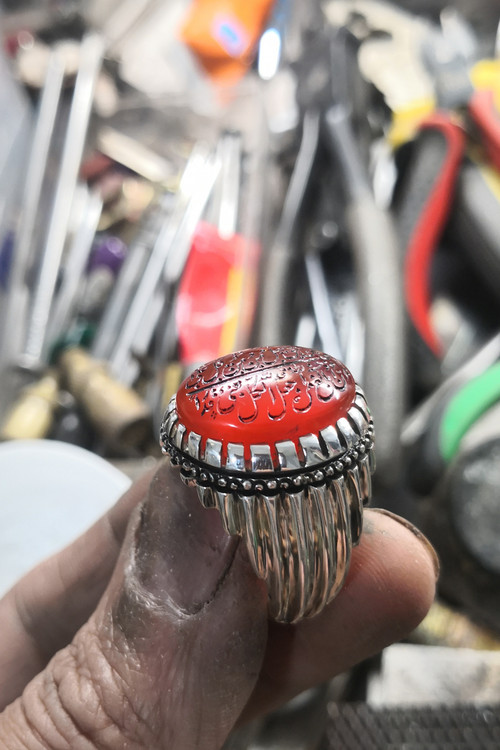 انگشتر نقره کاملا دستساز نگین عقیق سرخ یمن اصل حکاکی من یتق الله حکاکی امضا دار